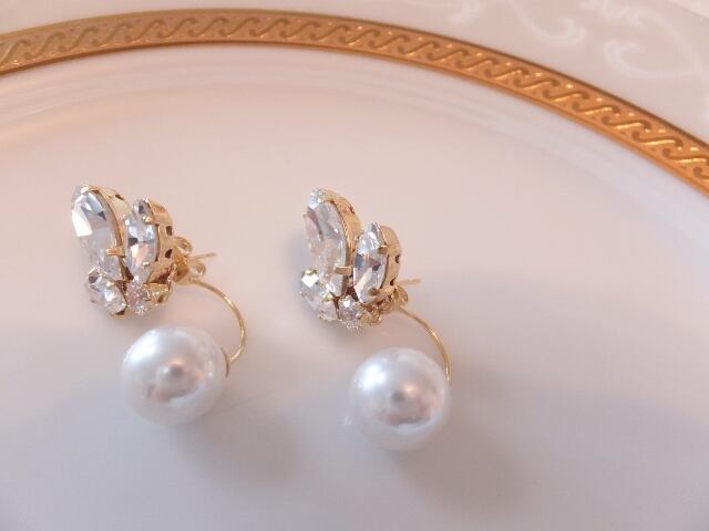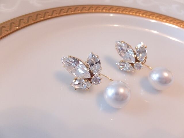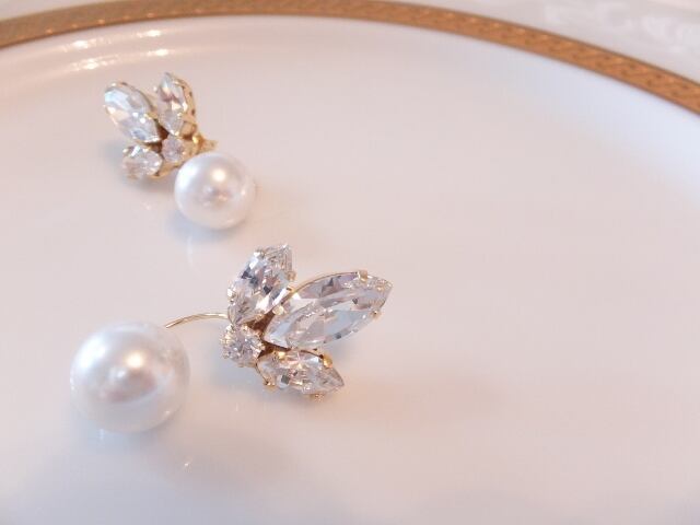 羽根をイメージしたスワロフスキーが輝くParty使用のピアス。