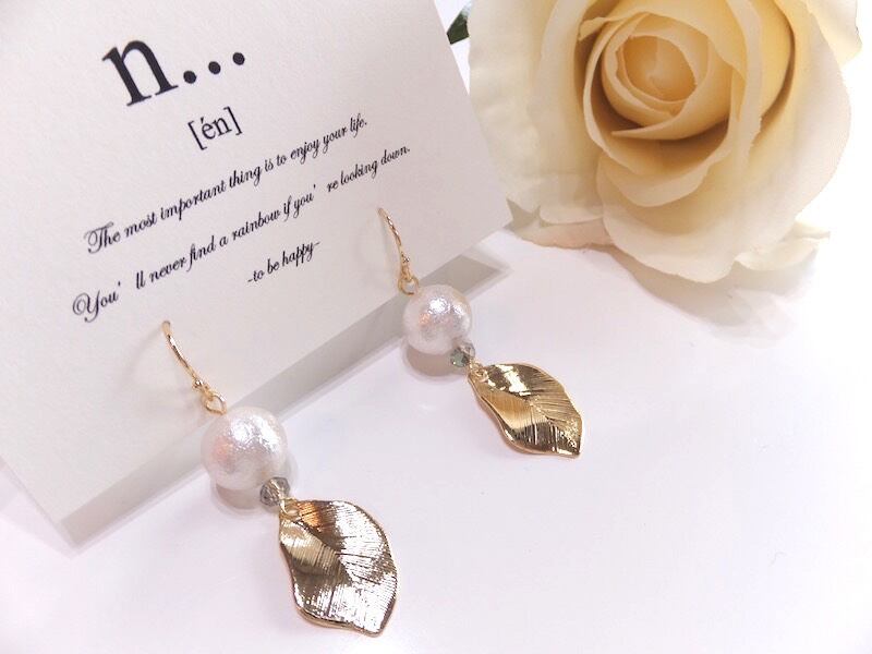 コットンパールの上品さと、確度によって輝く色の違うカットガラスが爽やかなPierce/Earringです☆