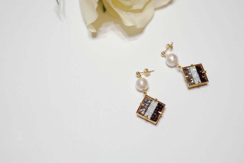 スワロフスキーをタイル状に敷き詰めたPierce/Earringです☆