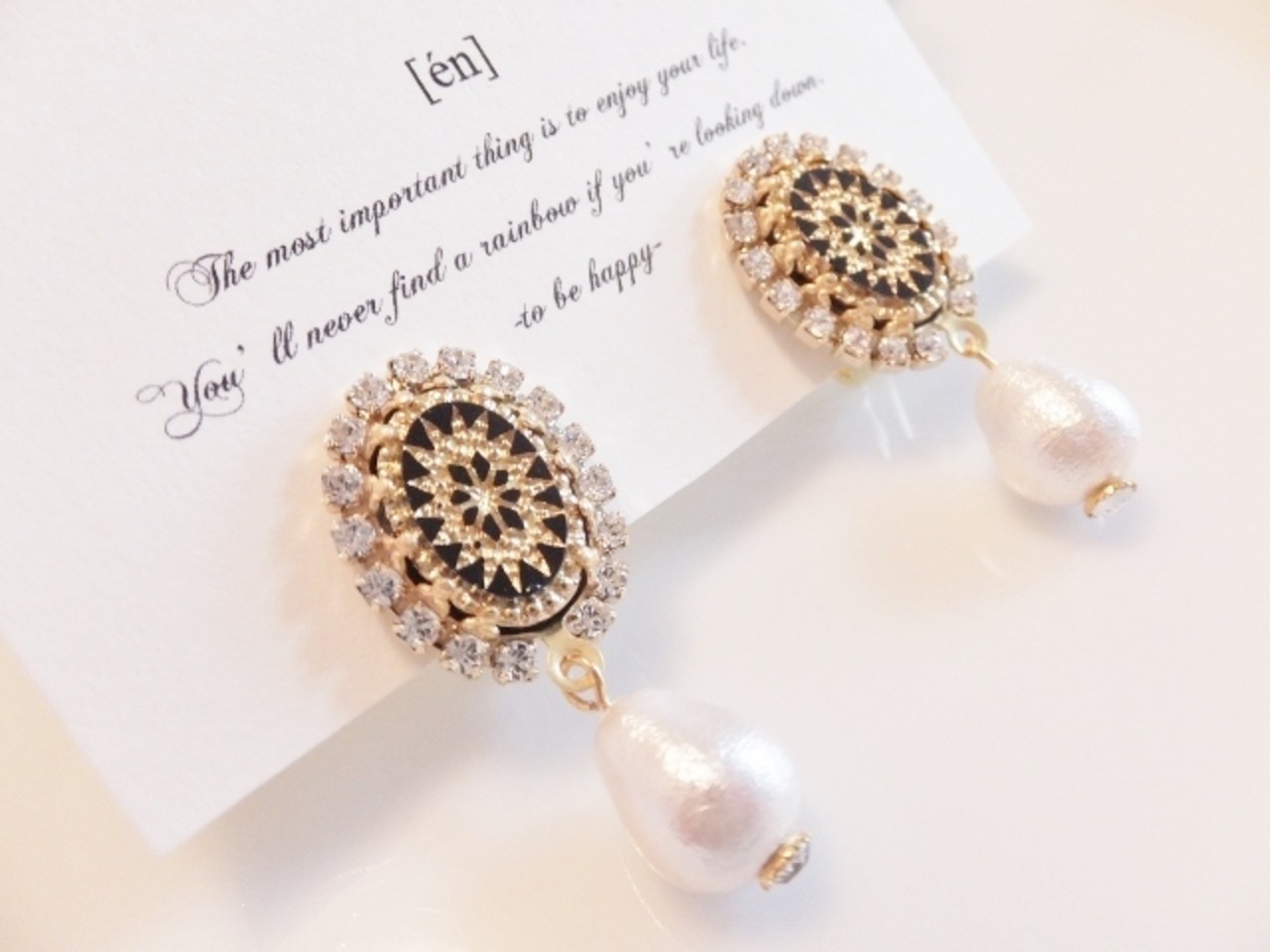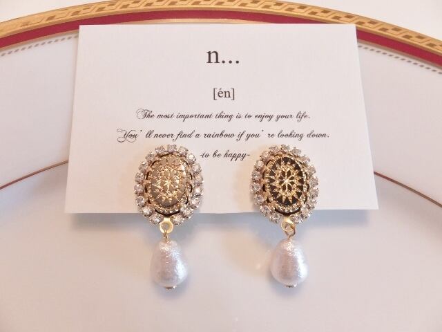 ガラス製のヴィンテージビーズをあしらったイヤリング。