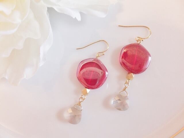 ヨーロピアンガラスとスワロフスキーのピアス/イヤリング。